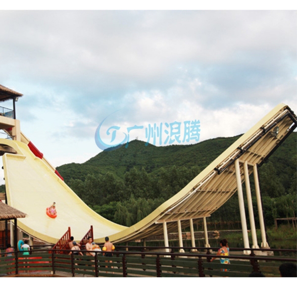 游客乘坐皮筏,從高11米的平臺口滑出發,立即進入接近垂直的斜坡俯沖而下,在沖到坡底而驚魂未定時,在巨大慣性的作用下,又瘋狂地沖上向另一面斜坡當中,一下一上,一上一下讓游客反復地體驗失重與超重奧妙感受,為游客帶來難忘的腎上腺素狂飆之旅,一切的煩惱和壓力都被拋棄得無影無綜,感覺生命的快樂、飛馳的無限快感。 此款水上滑梯由廣州浪騰水上樂園設備廠設計-生產-安裝-調試-驗收。全程跟蹤,一手包辦。已在奉化白龍潭、珠海夢幻水城、清遠藤源山泉水城、陽江海陵島水上樂園、河南穆家寨水上樂園、大連天上人間水上樂園等大型水上樂園中使用。