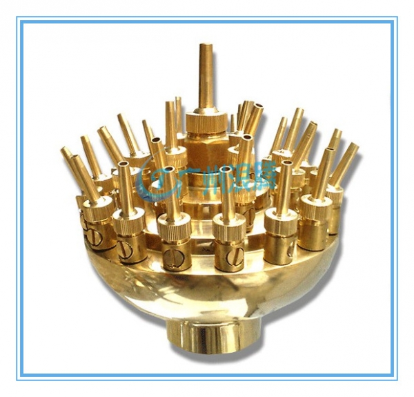 特點:由中心直上和兩圈不同層次的可調直流噴嘴組成,噴嘴形成中心水柱和兩層向外拋射的拋物線狀。由于每個噴嘴角度可調,噴水造型靈活多變。